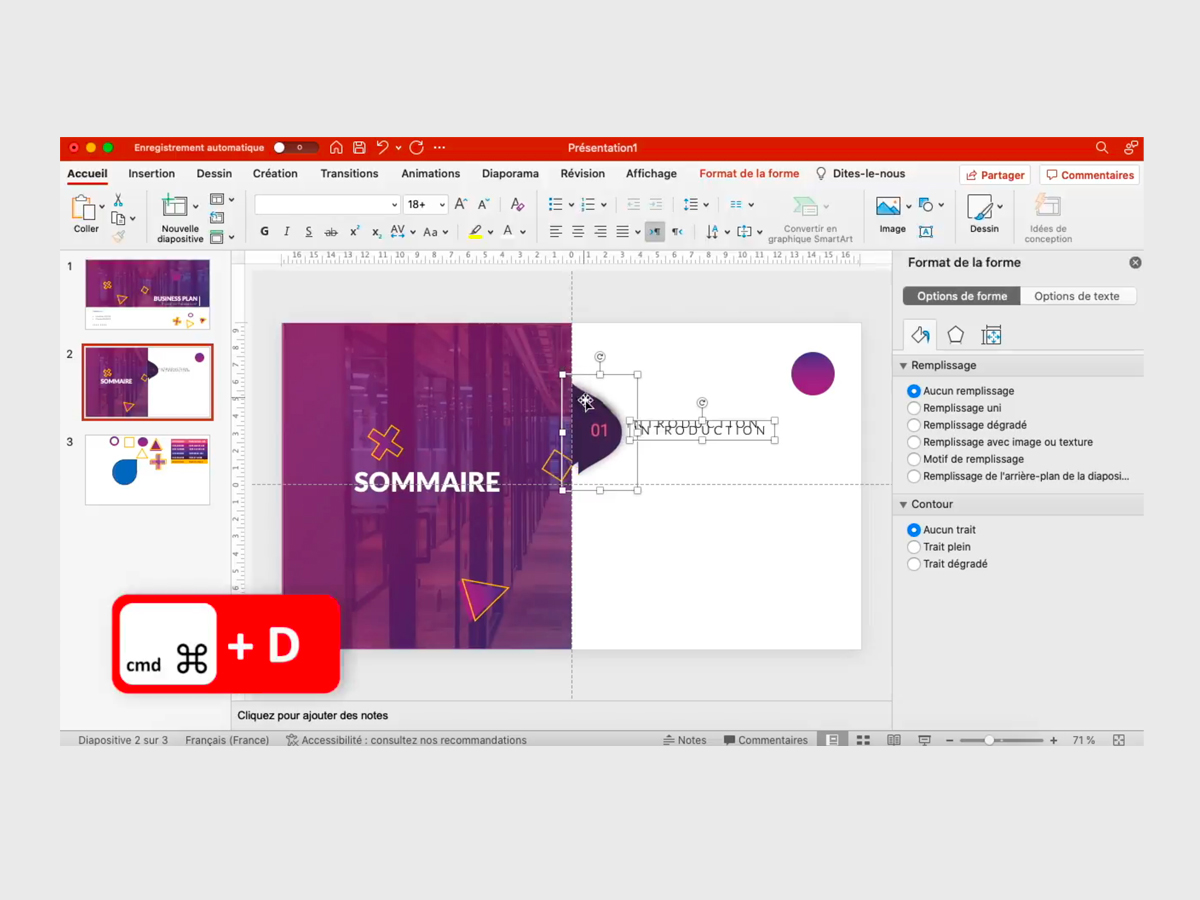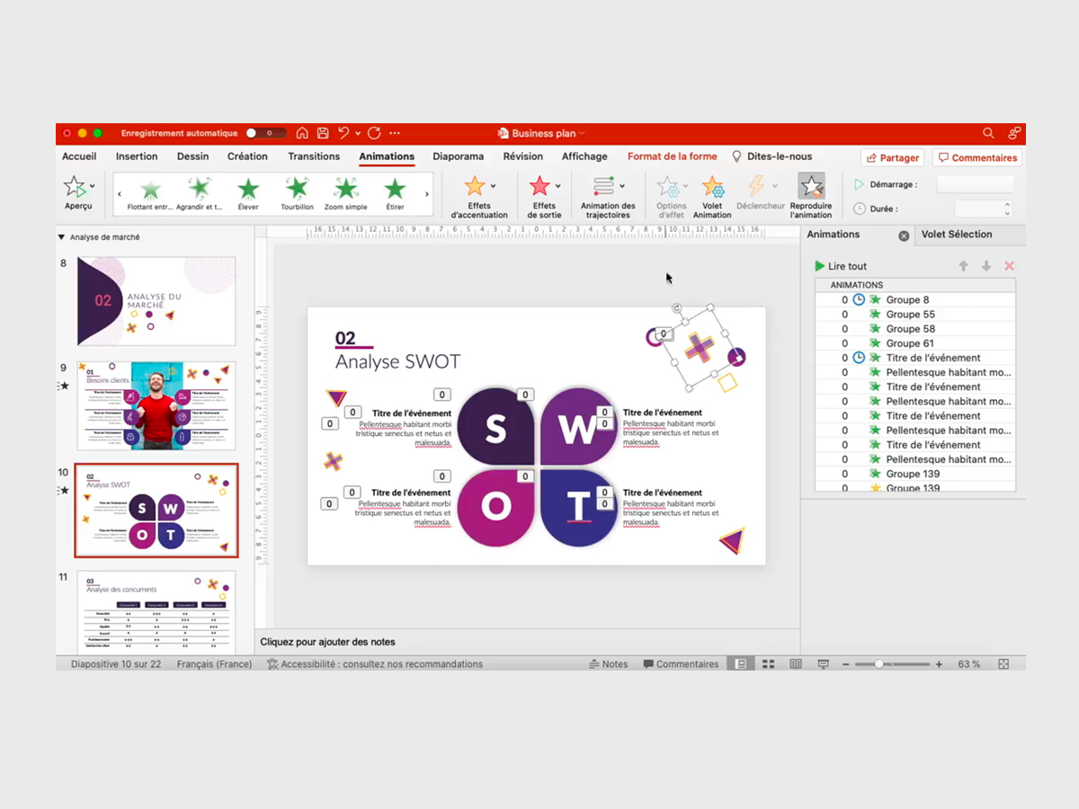Dès le premier module, vous suivez la création d’une présentation professionnelle complète, slide par slide. Ce cas pratique vous permet d’expérimenter les principes du design et de la communication visuelle directement dans PowerPoint.