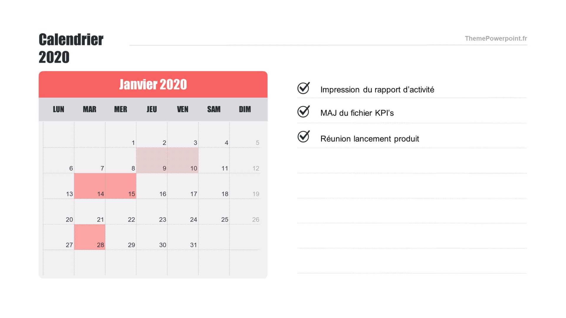 Nous vous aidons grâce à ce super template de calendrier prévisionnel 2020 à modifier sous Powerpoint.