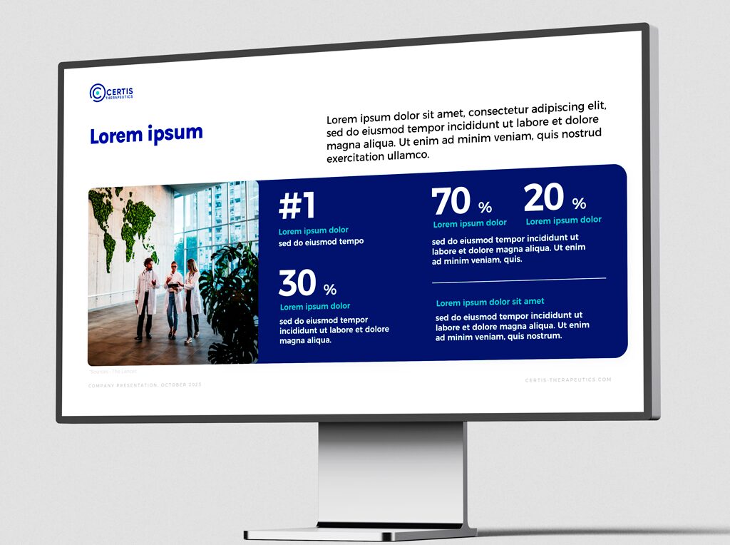 Notre mission : transformer un contenu dense, scientifique et médical en un support visuel fluide, clair et percutant, capable de convaincre des investisseurs exigeants, en France comme à l’international.